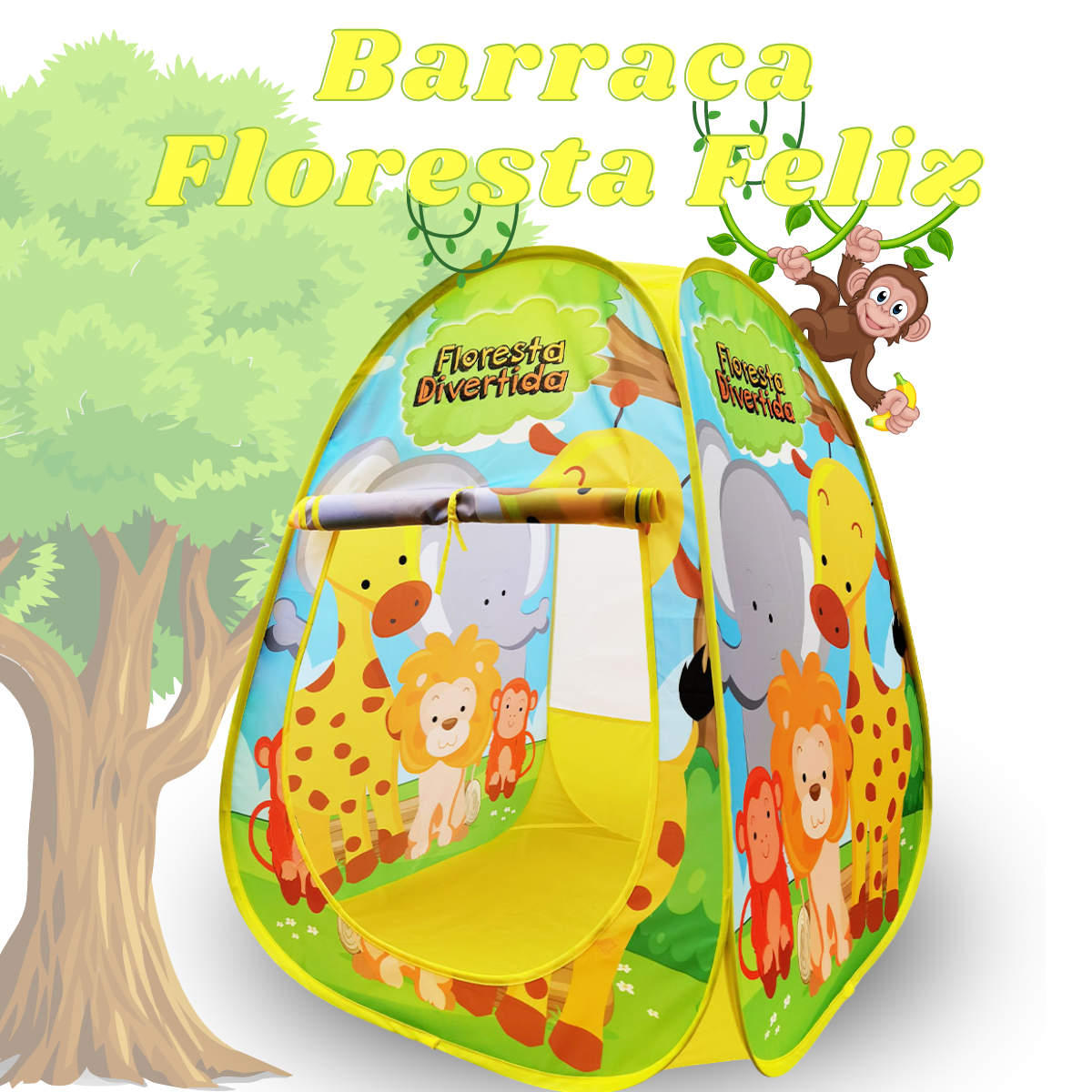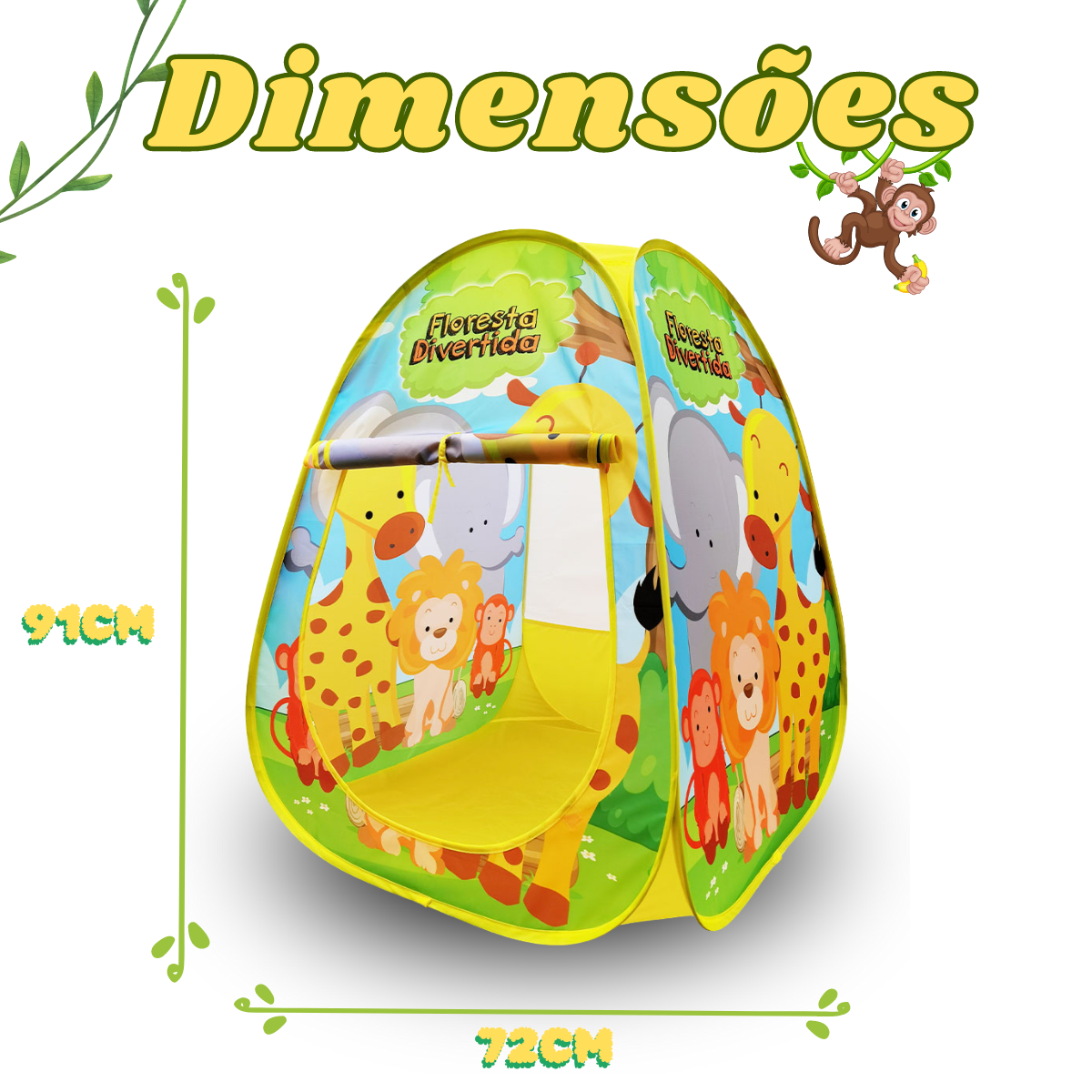Barraca Toca infantil dobrável floresta divertida – Vem com uma bolsa e com a estampa exclusiva com os bichinhos da floresta, a criançada vai se apaixonar por essa barraca. Leve, dobrável e super segura e divertida.