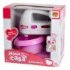 Brincar de casinha vai ficar ainda mais divertido com a linha Mania de Casa! Mude a posição da parte superior da batedeira e ligue utilizando o botão lateral ou apertando o botão superior. Ela gira os batedores e acende luz!