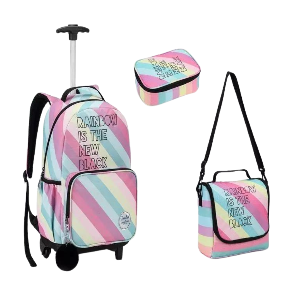 Kit Juvenil Mochila com rodinhas mais Lancheira e Estojo Denlex.