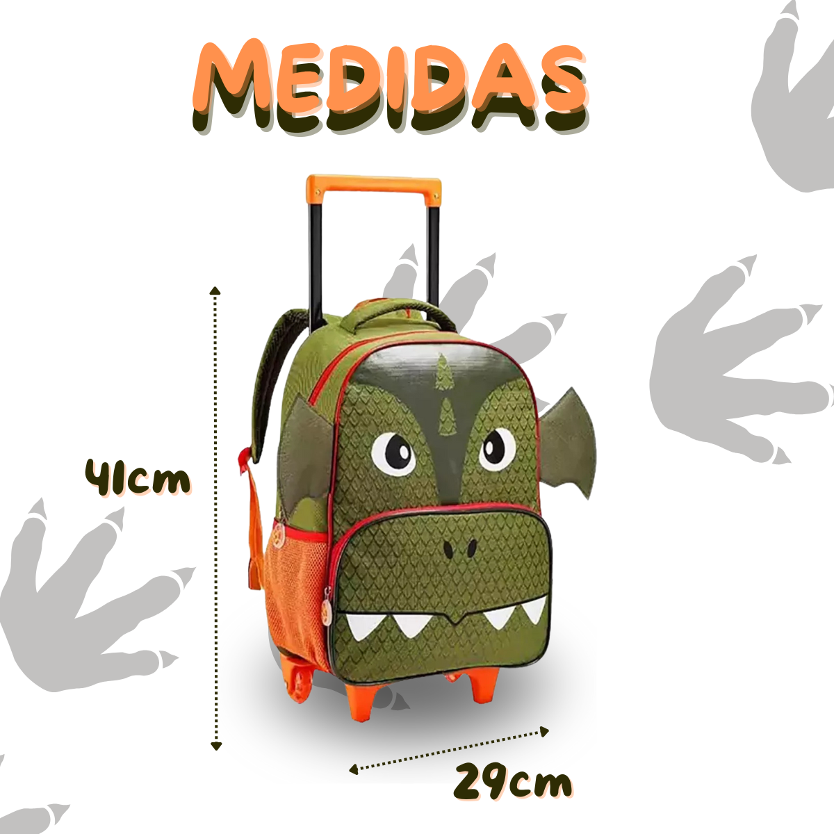 A Mochila possui rodas de silicone e tem carrinho embutido, garantindo o transporte fácil de todos os pertences sem se preocupar em carrega-los. E para identificação da criança, possui um identificador no verso. Tamanho aproximado em cm: AxLxP 41×29+x14