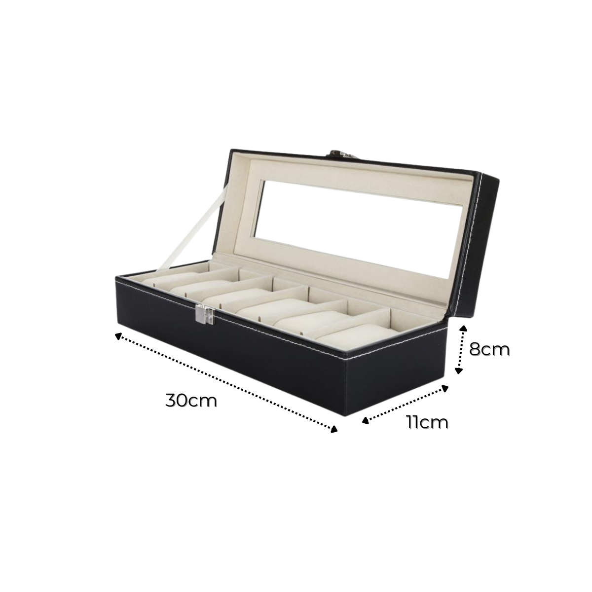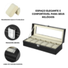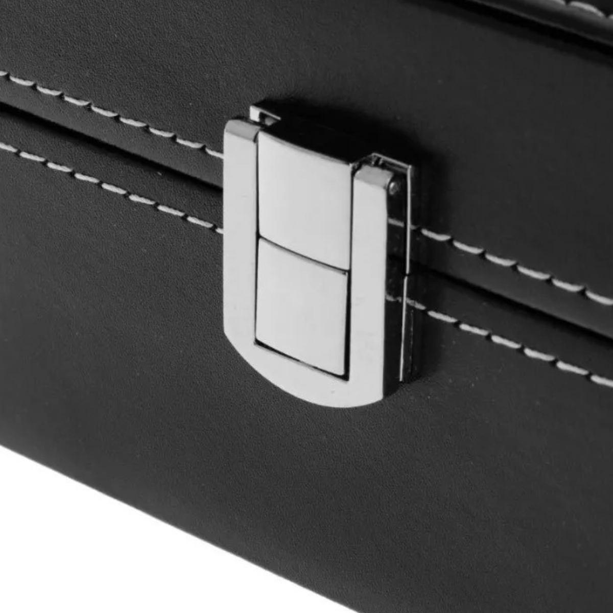 Com dimensões de 30 cm de comprimento, 11 cm de largura e 8 cm de altura, este estojo é compacto e fácil de transportar, tornando-se um excelente companheiro para viagens. O fechamento em fivela garante que seus relógios permaneçam seguros, mesmo em movimento.