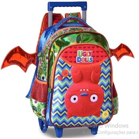 Mochila de Rodinha Infantil UglyDolls – UG2304K -Uma divisória com fechamento em ziper- Bolso frontal com ziper- Confeccionada com frente de cetim-Puxadores em formato de botões-Detalhe de Asa na parte de traz-Alça de Costas acolchoada-Carrinho de Rodinha Medidas Altura 41 cm Largura 31 cm Comprimento 13 cm